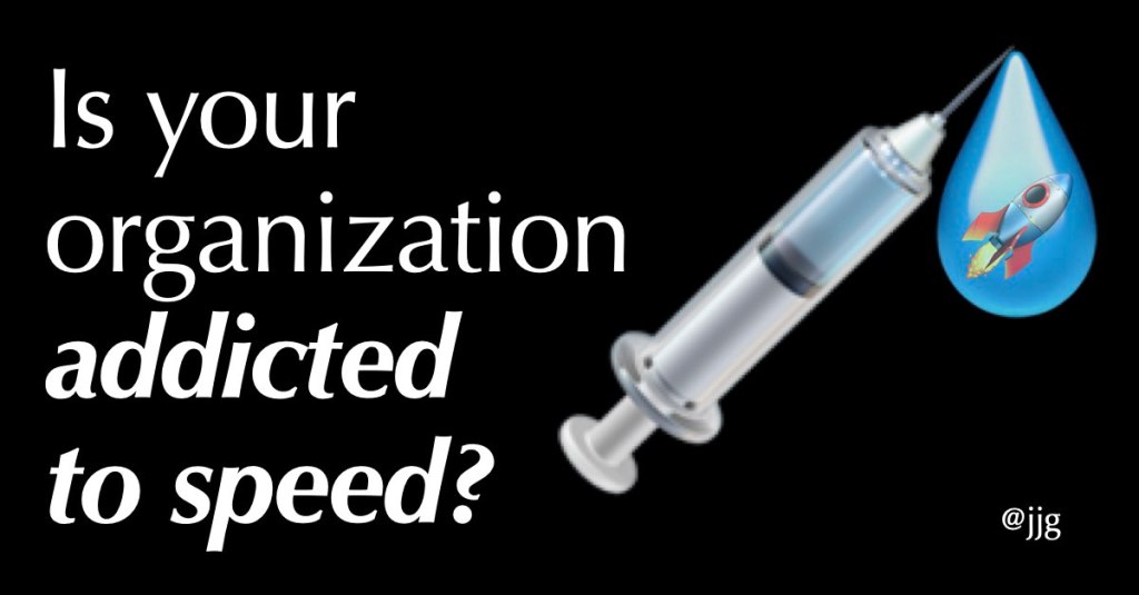 Driving organizational maturity means driving the leadership’s collective ability to recognize when speed is not the right move. As with breaking any addiction, the addict can’t change if they don’t really want to. But to want that change, they must first see what the addiction is costing them.