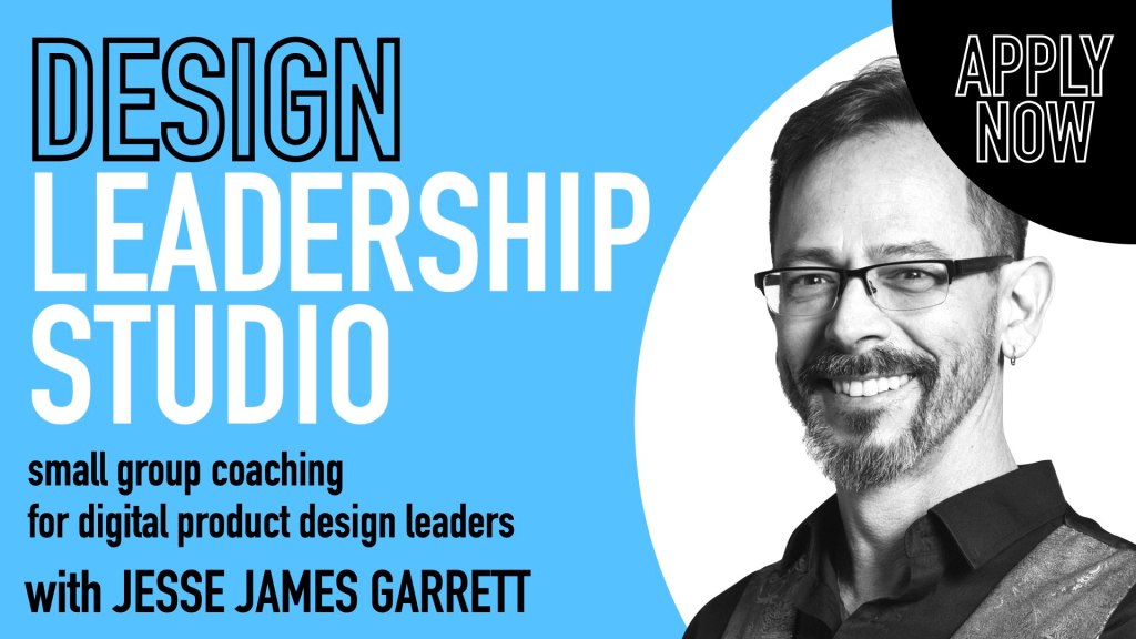 Drawing on the best of both design practice and coaching methodologies, I’ve developed a structured group coaching program to help user experience leaders connect, seek support, and share their wisdom in a safe and confidential environment. This is Design Leadership Studio.